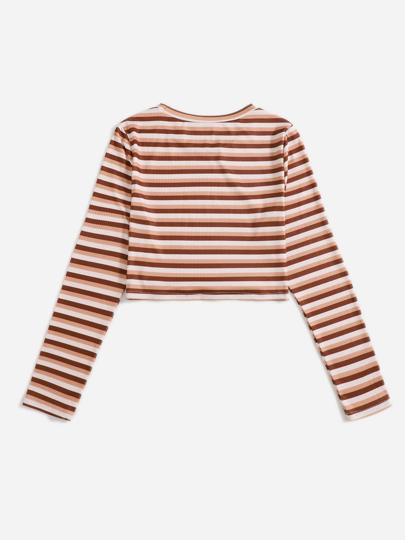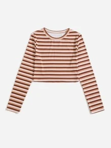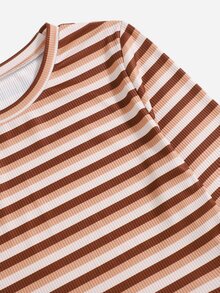 T-shirt court à rayures côtelé