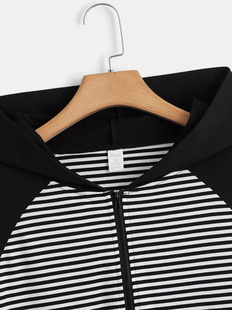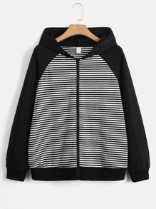 Sweat-shirt à capuche zippé à rayures manches raglan