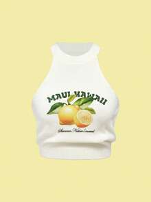 Débardeur court ajusté à fines bretelles, imprimé citron, style sexy américain, pour l'été et l'automne/hiver