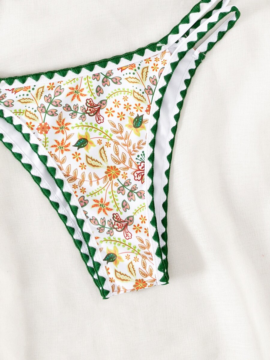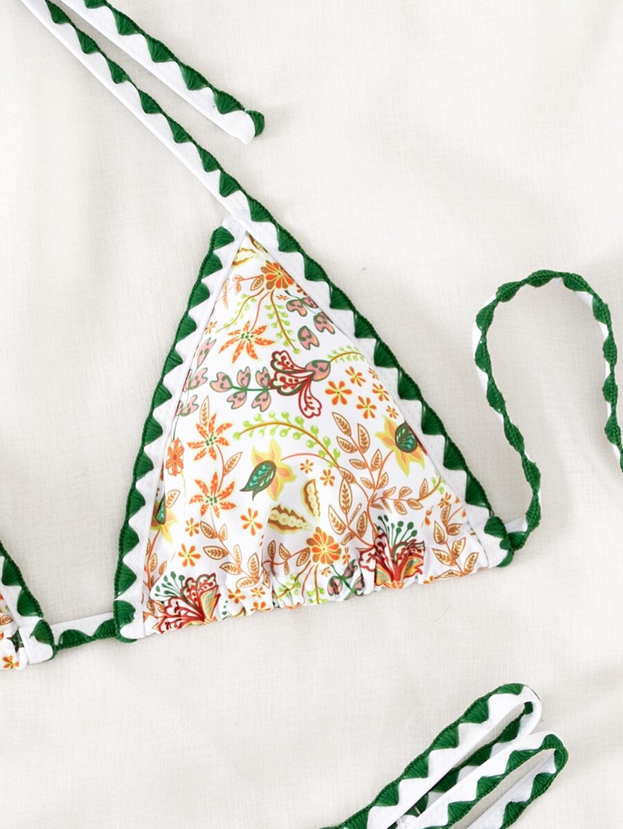 Ensemble bikini ras-du-cou triangle avec impression de plantes de plage d'été