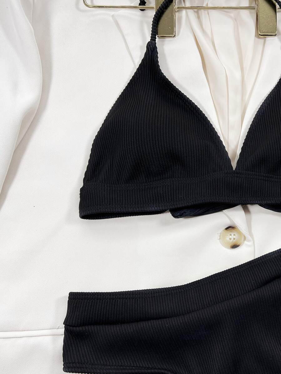 Ensemble de bikini taille haute à côtes pour la plage d'été