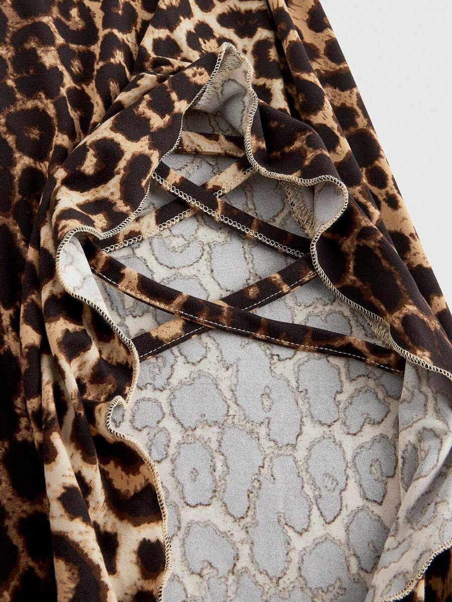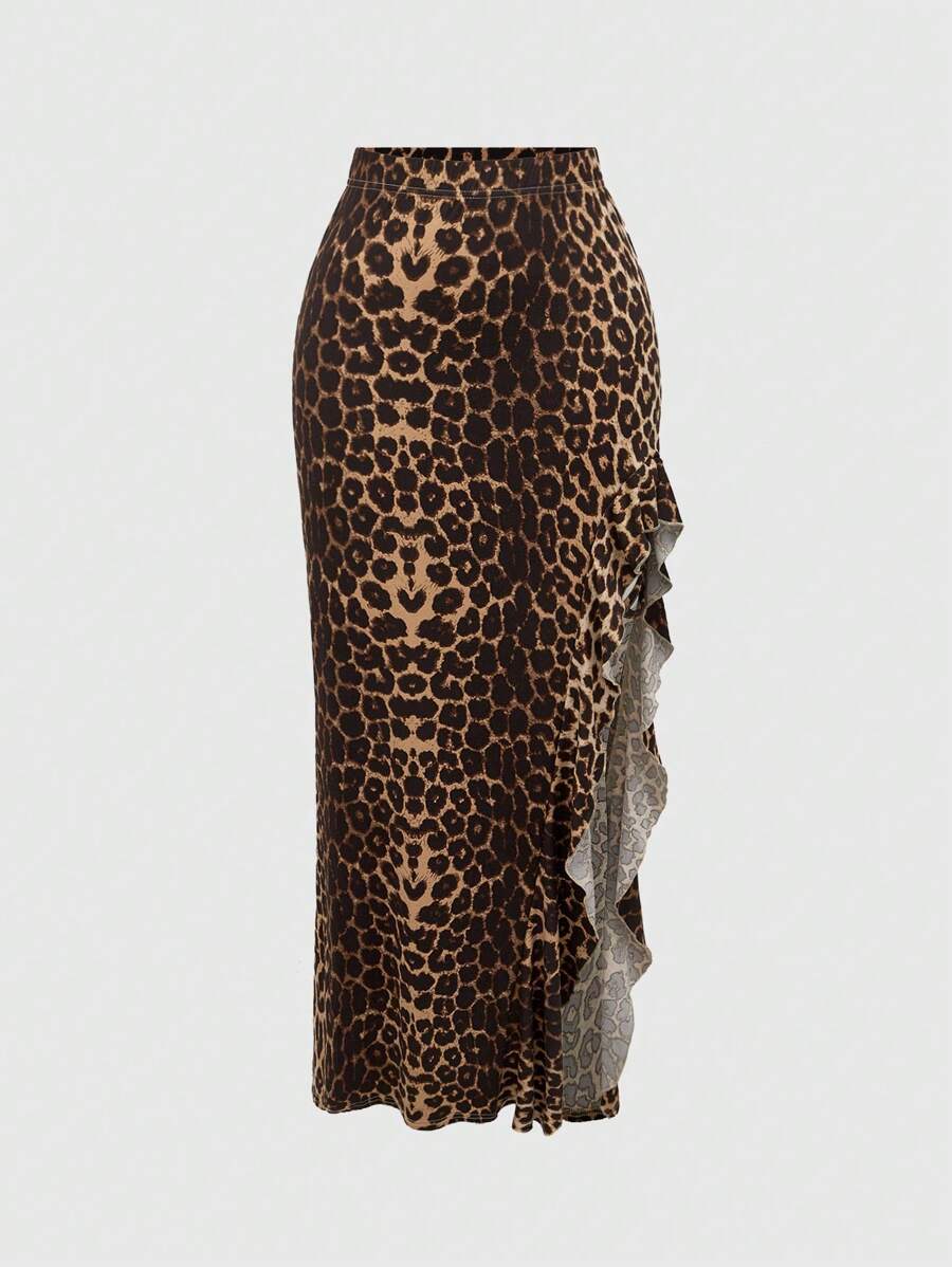 Jupe fendue asymétrique imprimé léopard à la mode d'été avec ourlet à volants