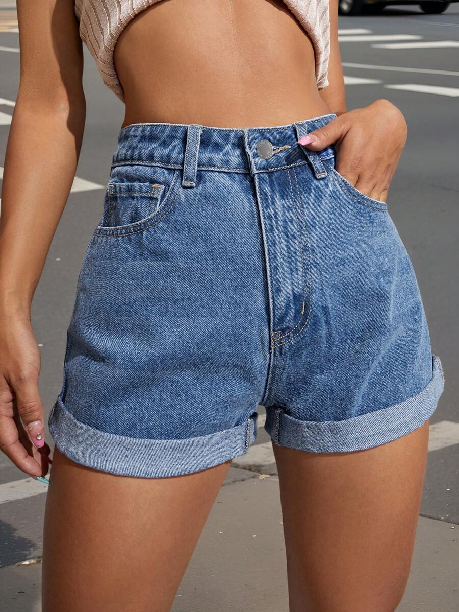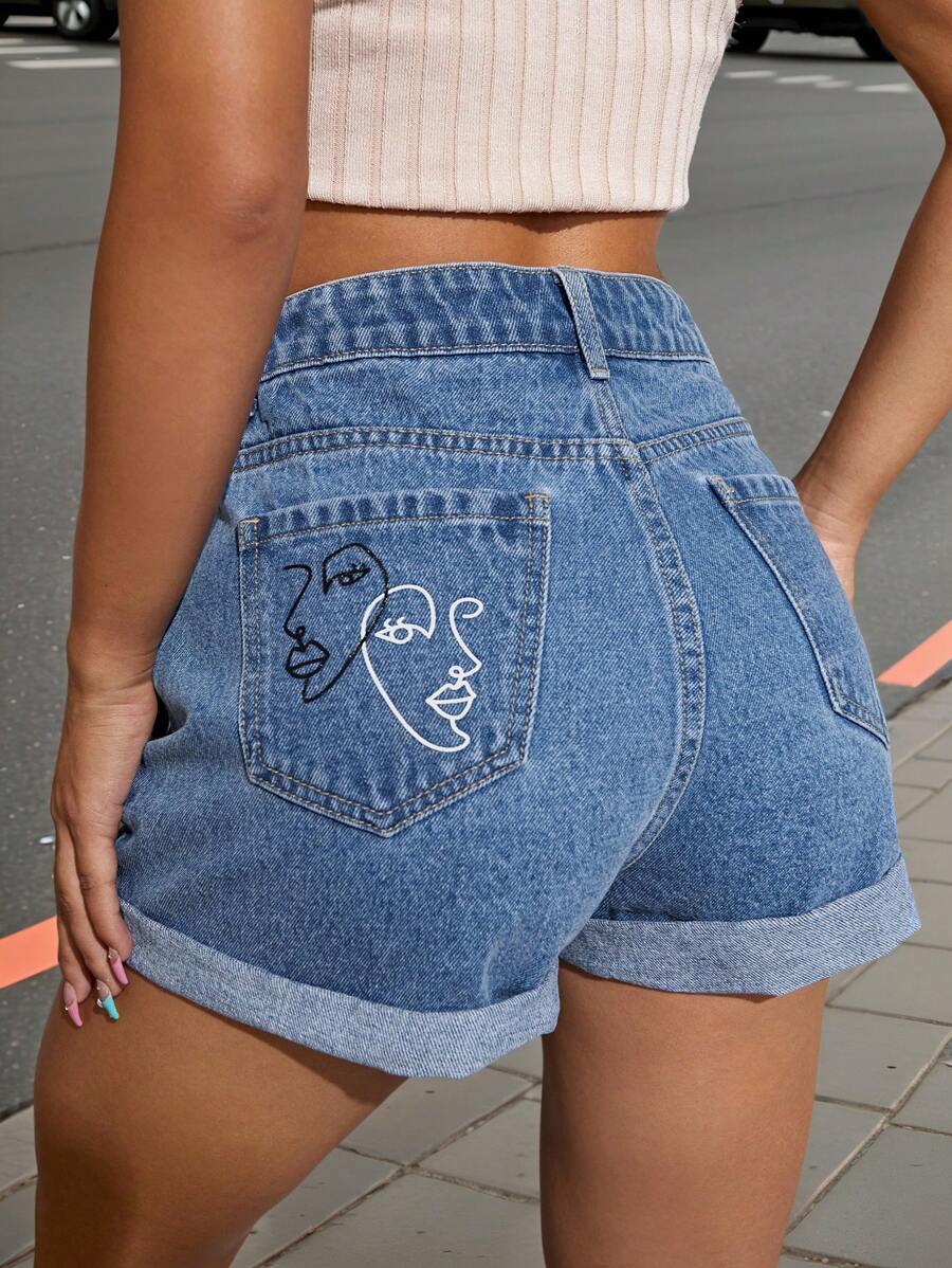 Shorts en jean avec ourlet retroussé, motif graphique, tenue d'été