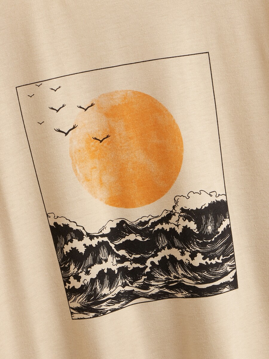 T-shirt à motif de vague et de soleil