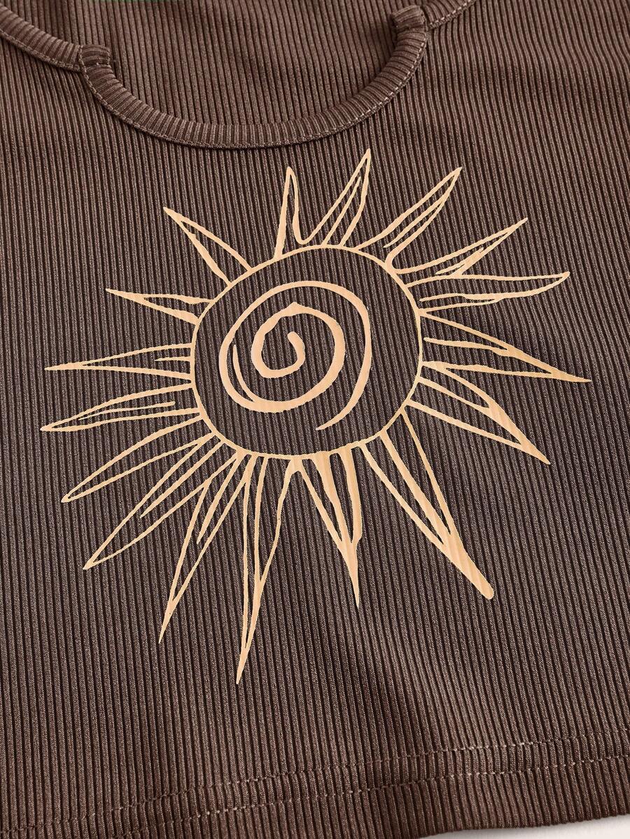 Hippie Débardeurs & camisoles pour femmes Tissu côtelé Casual graphique