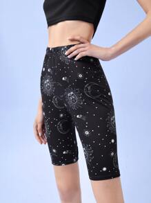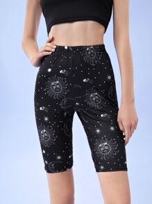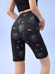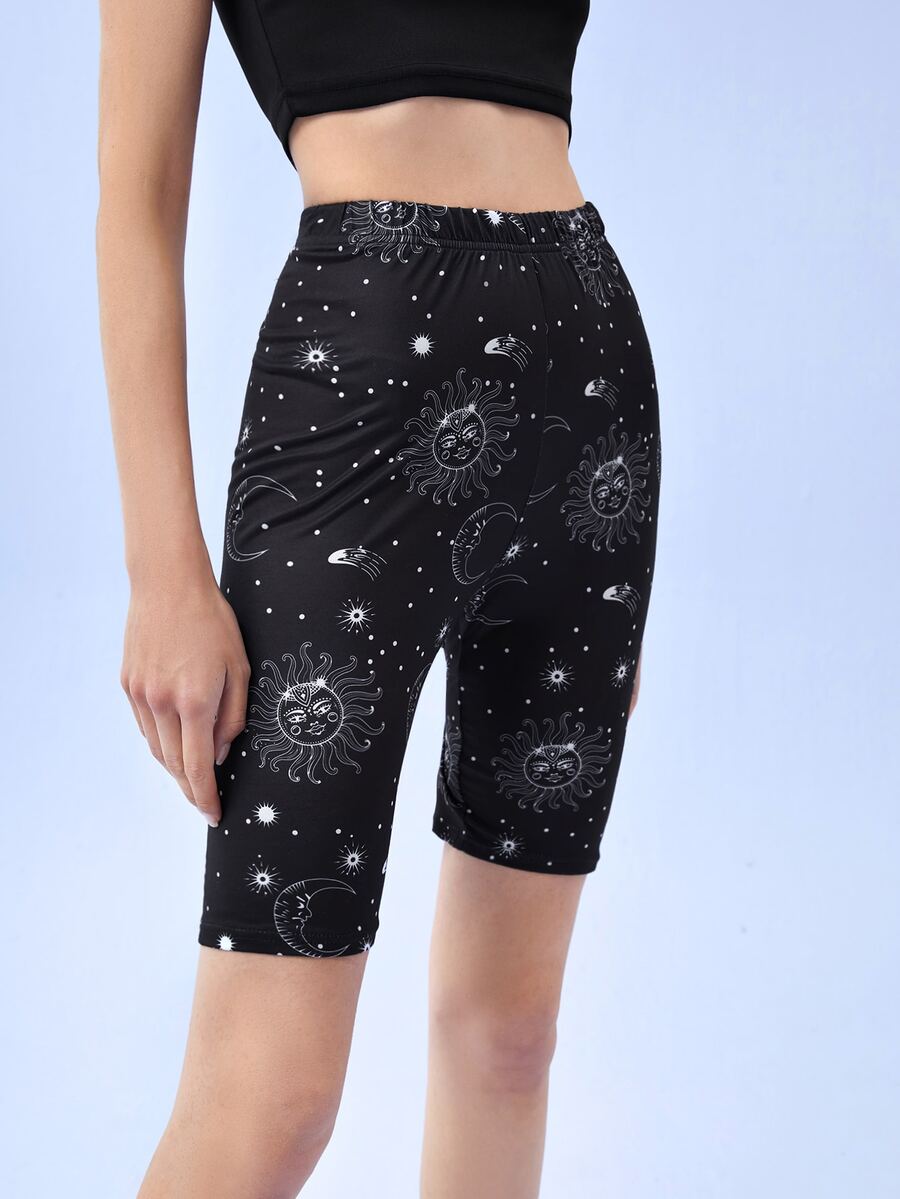 Short cycliste à motif de soleil et de lune