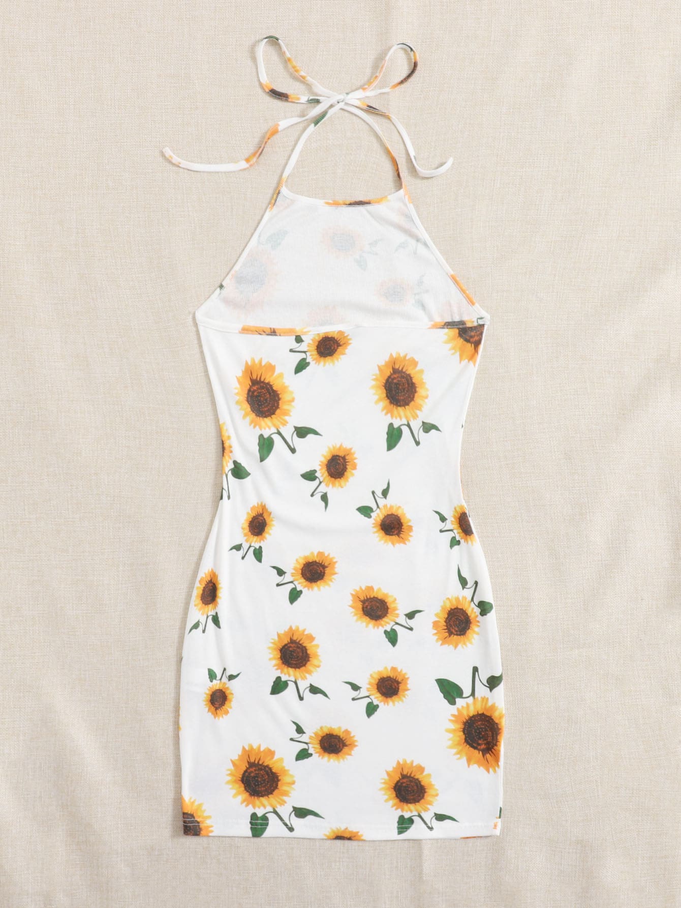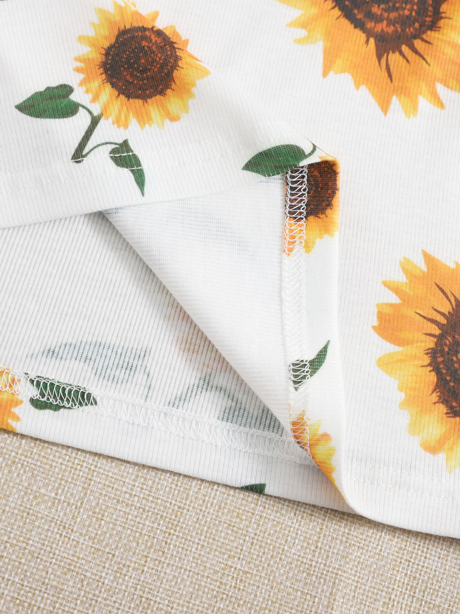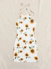 Robe à imprimé tournesol avec ras-du-cou et nœud