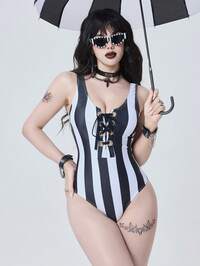 2026SS Maillot de bain une pièce gothique punk avant-gardiste sexy, mode de rue chic élégante et mystérieuse avec capuche 2 en 1, rivets métalliques et décoration attrayante, maillot de bain une pièce noir ajusté, nouvelle arrivée printemps/été 2026 pour femmes, convient pour le Nouvel An, la Saint-Valentin, la rentrée, les voyages, la plage, le thé de l'après-midi, les pique-niques, les fêtes, le port quotidien, les loisirs, les sports de plein air, tenue 2026SS Maillot de bain une pièce gothique sombre, bizarre, punk, sexy et mystérieux. Design de niche avant-gardiste avec pentagone dans le dos, bretelles dénudées. Maillot de bain une pièce noir moulant, nouvelle collection Printemps/Été 2026 pour femmes. Idéal pour le Nouvel An, la Saint-Valentin, la rentrée, la saison des voyages. Convient pour les vacances, la plage, le pique-nique, les fêtes, le port quotidien, les loisirs et les sports extérieurs. Tenue . Maillot de bain une pièce gothique pour femmes, style européen et américain, audacieux et avant-gardiste, pour festivals de musique en plein air, style gothique punk apocalyptique de base polyvalent. Fines bretelles, décolleté en V profond, pendentif croix métallique, taille avec croisement et découpe au dos. Coupe affinante, convient pour la plage, le bord de mer, les festivals de musique printaniers. Maillot de bain gothique une pièce, maillots de bain goth pour formes généreuses