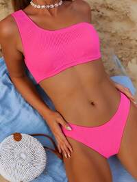 Ensemble bikini texturé asymétrique top & 2 pièces Maillot de bain