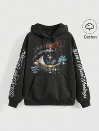 Grunge Punk Sweatshirt ample noir imprimé avec slogan de festival de musique, paillettes pour les yeux, style punk pour femmes