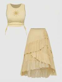 Ensemble top court et jupe avec garniture de laitue et ourlet fendu, école