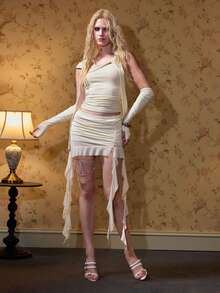 Débardeur asymétrique froncé, doux et cool, avec poignets de manches