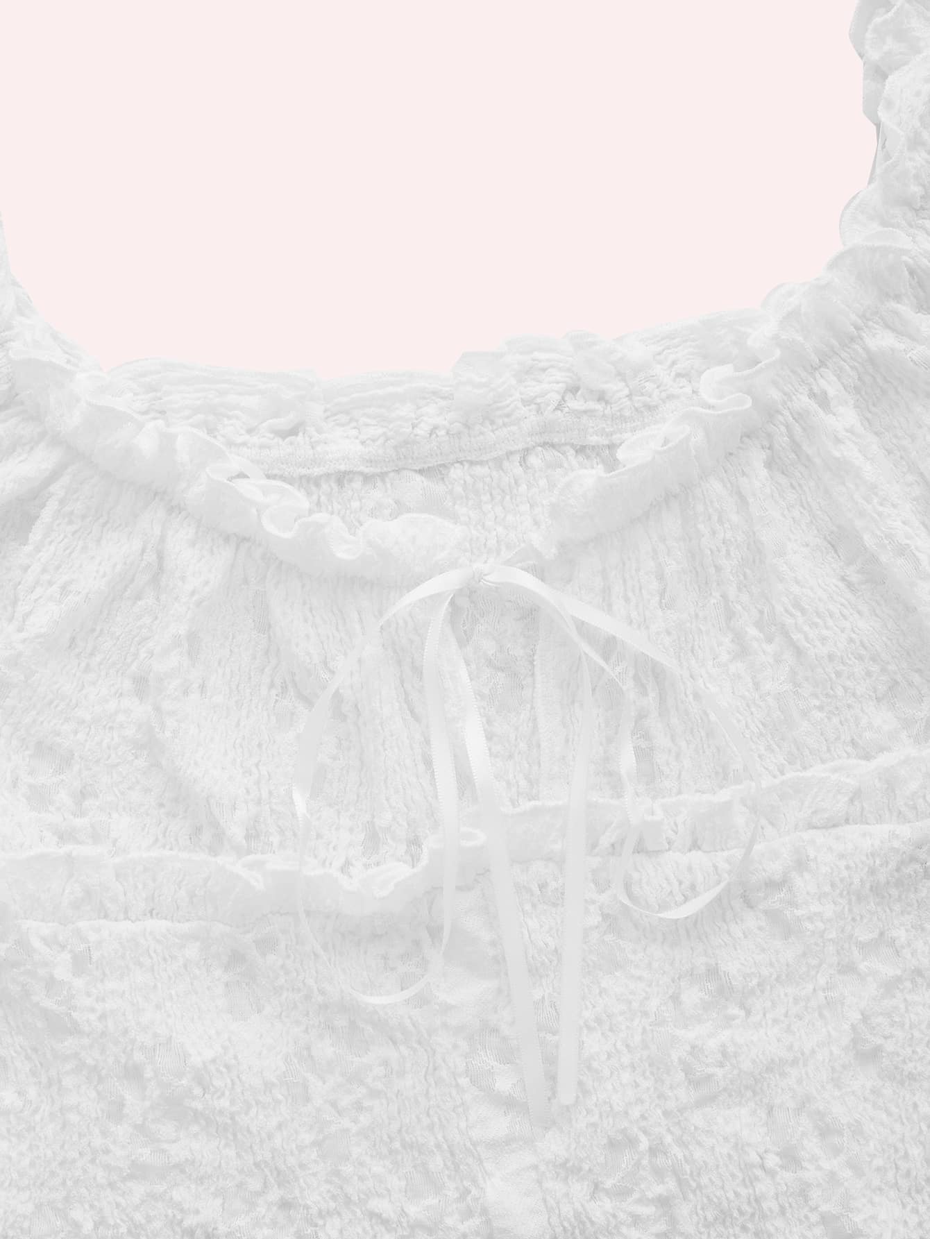 Blouse courte à encolure de cœur à nœud à ourlet ondulé