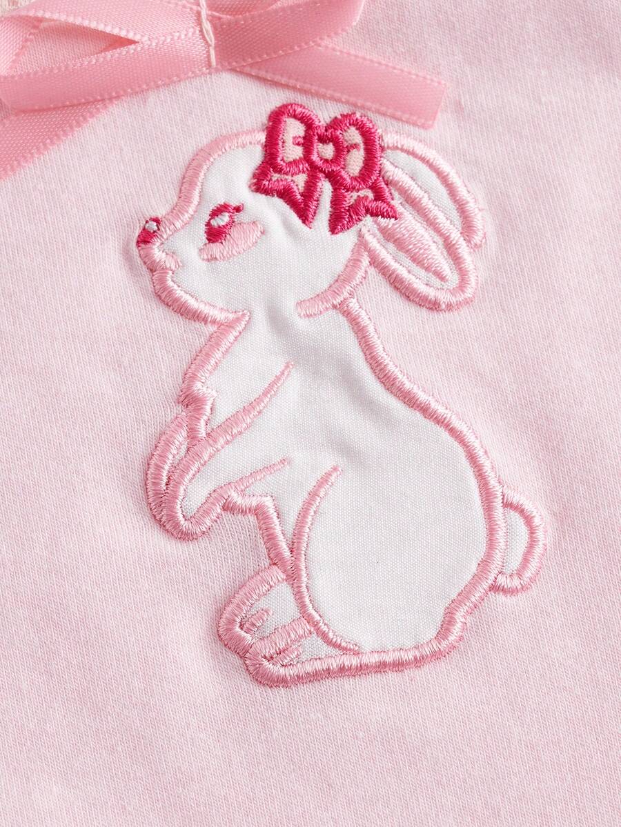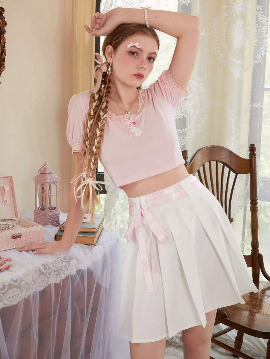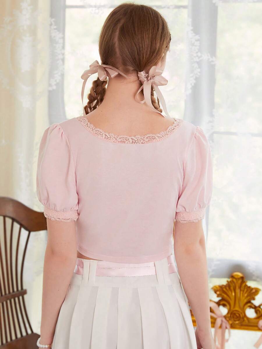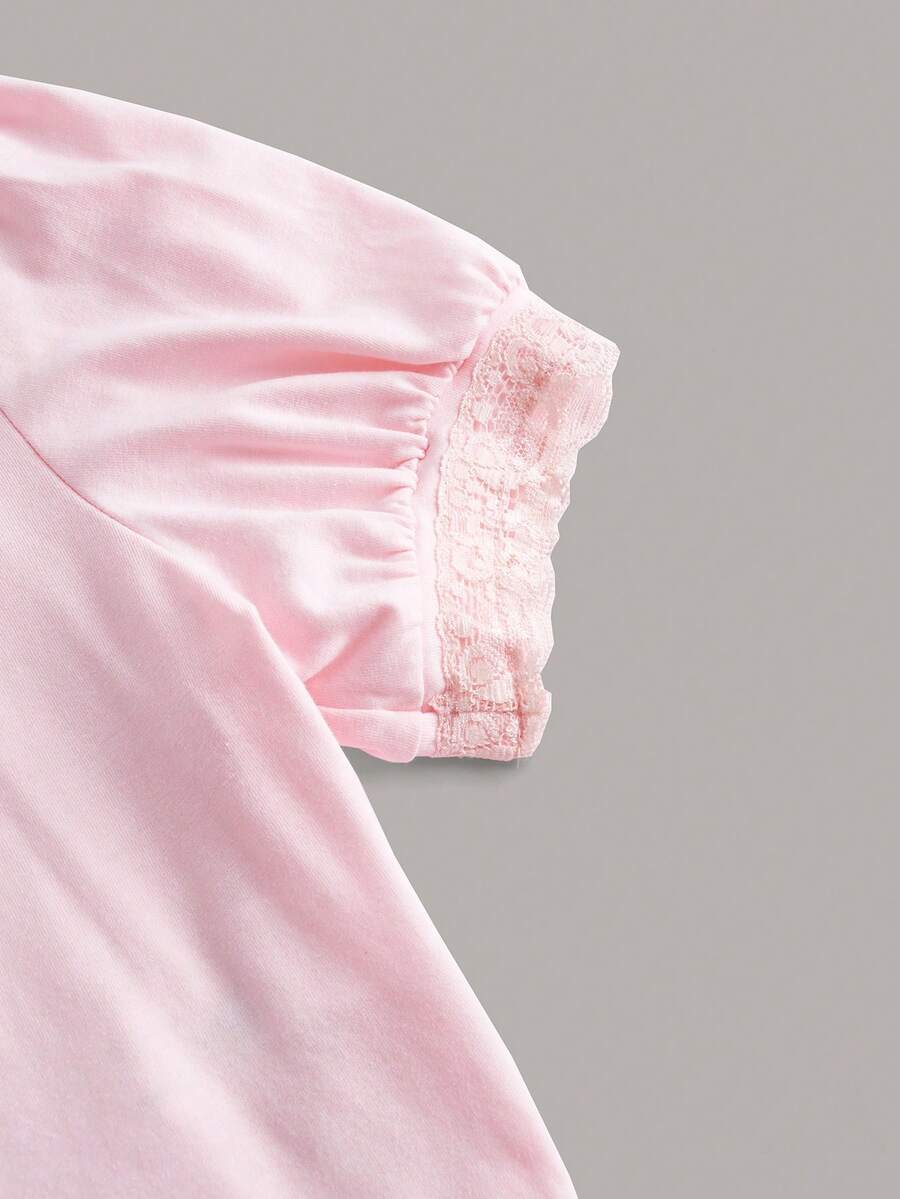 Sweetness T-shirt À Broderie Dessin Animé En Dentelle Manches Bouffantes