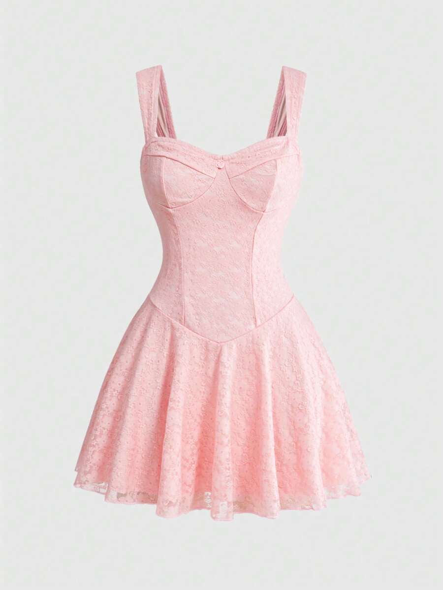 Sweetness Robe courte élégante et mignonne pour femme avec col en V en dentelle, idéale pour les rendez-vous romantiques et les vacances