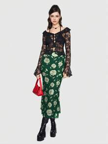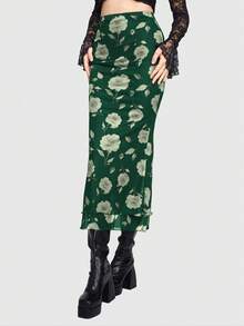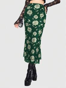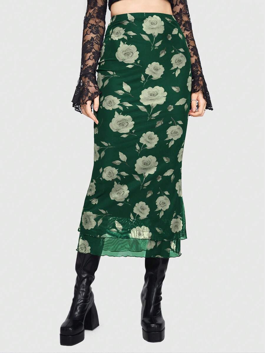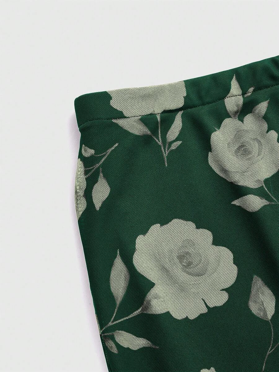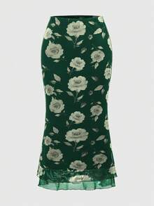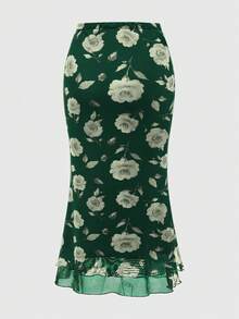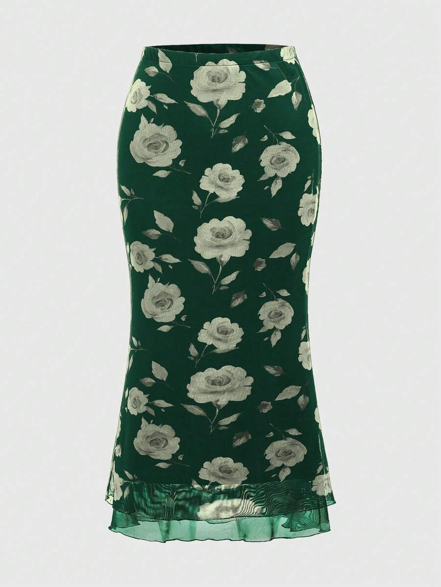 Jupe ajustée à taille haute avec volants et imprimé floral élégant, style vacances