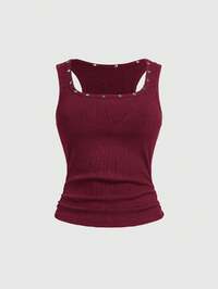 ROMWE Avant Débardeur sexy avec encolure drapée et perles, dos nu pour femmes, style rétro vacances île