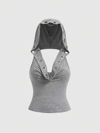 Grunge Punk Débardeur noir sexy pour femmes avec fines bretelles, décolleté plongeant, clous, strass et rubans. Convient pour l'été, la plage, la remise des diplômes, Pâques, les concerts, les vacances à Nashville, les festivals de musique, le rock