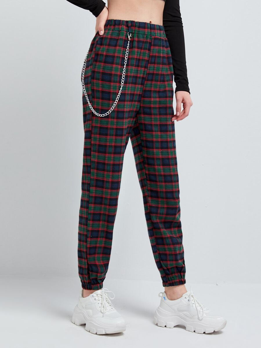 Pantalon de survêtement à carreaux avec chaîne