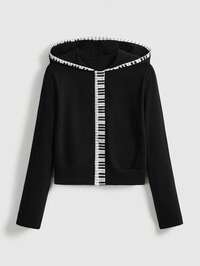 sweat-shirt à capuche court avec cordon de serrage - noir et blanc, hauts à manches longues pour l'automne/l'hiver