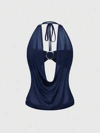 ROMWE Avant Top à col drapé profond sans dos avec sequins Y3K (inclut doublure de camisole), style de rue
