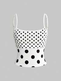 ROMWE Avant Débardeur femme à pois et patchwork, style décontracté, mignon et doux, dos nu, pour l'été
