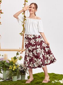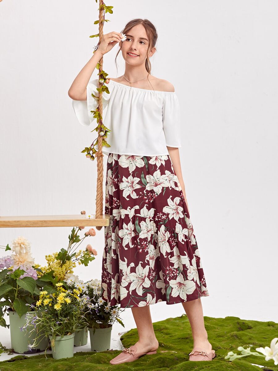Fille adolescente Top col bardot & Jupe