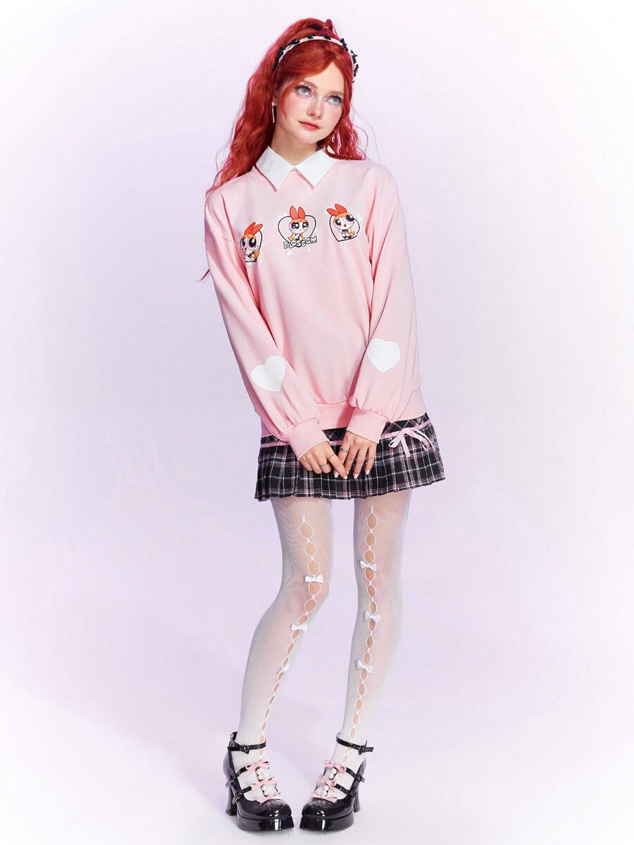 The Powerpuff Girls | ROMWE Sweat-shirt Dessin Animé À Col Contrastant