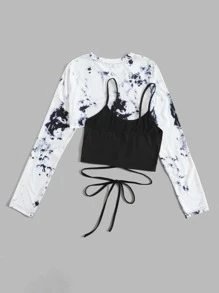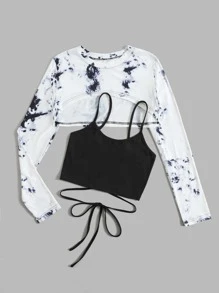 Ensemble top à fines brides à lacets et t-shirt tie dye