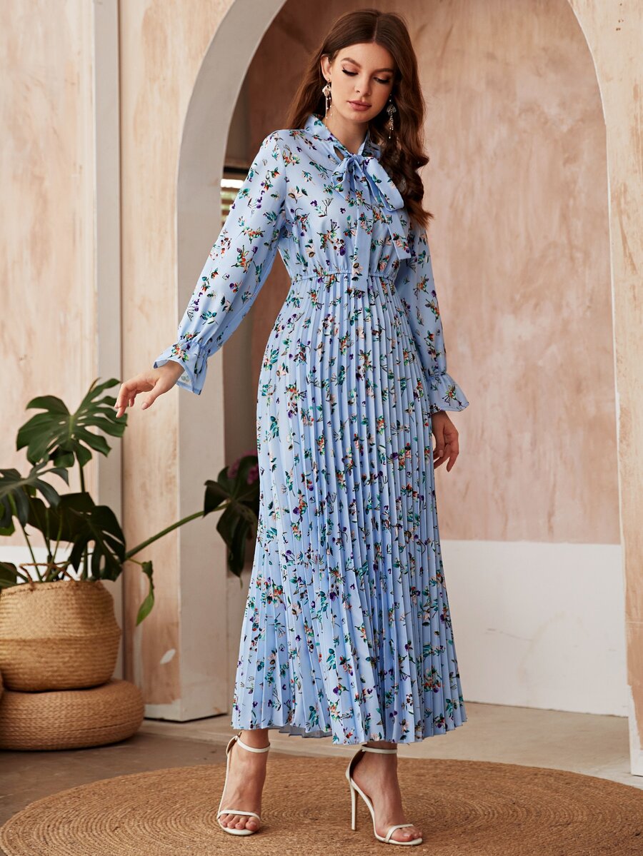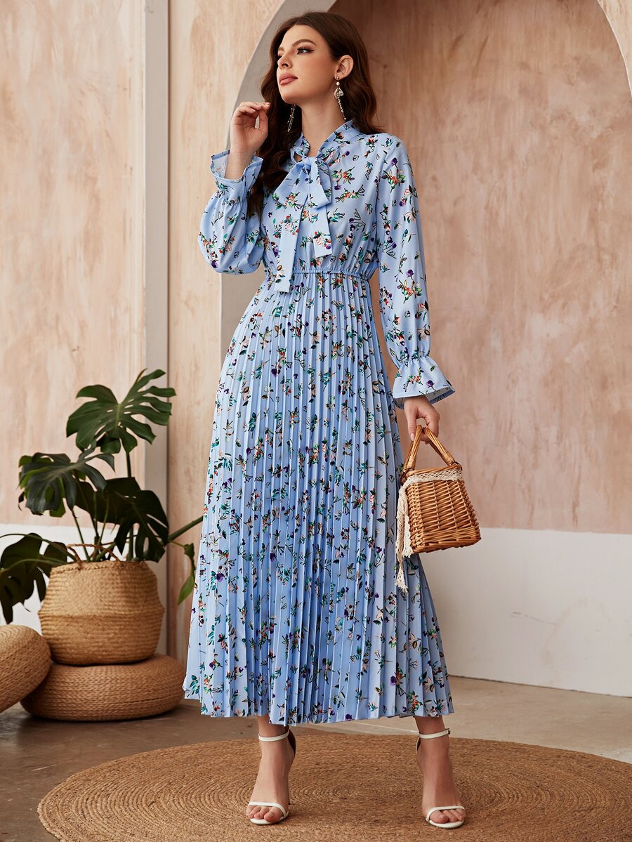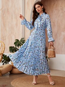 Robe plissée fleurie avec nœud