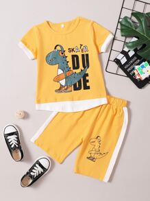 Garçon 2 en 1 à imprimé dinosaure T-shirt avec Short de sport
