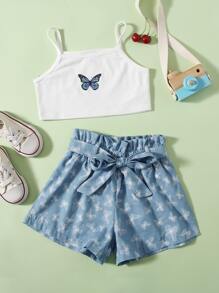 Ensemble short ceinturé à taille froncée et top à fines brides à imprimé papillon