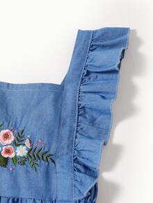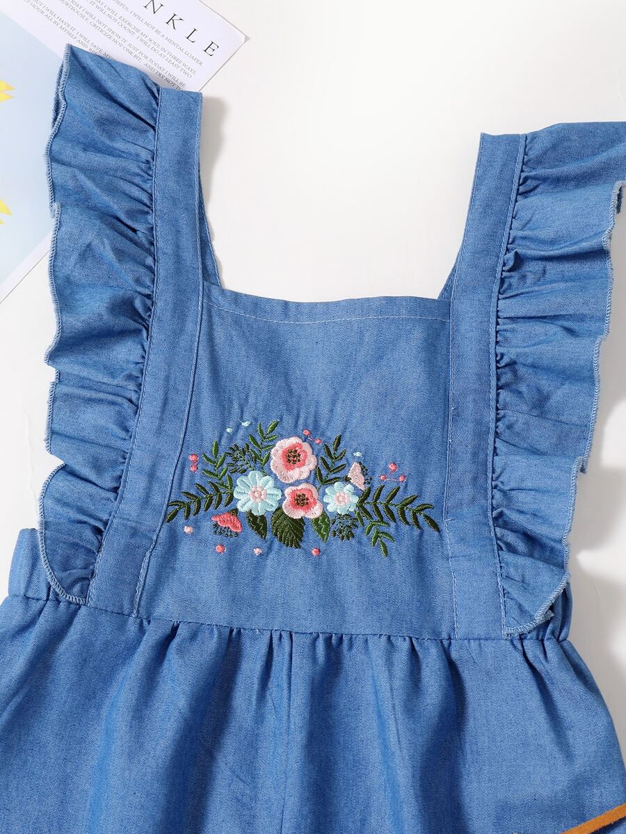 Fille Combishort en jean à broderie à volants
