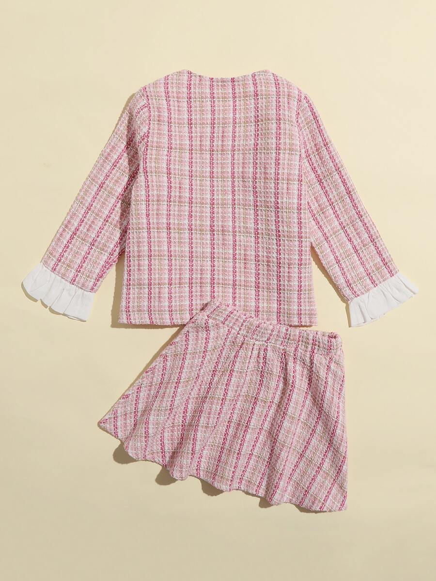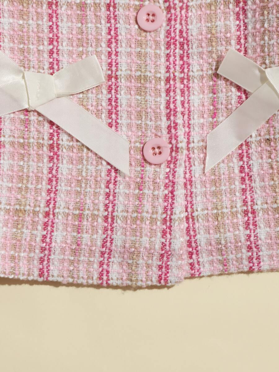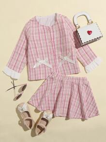 Veste en tweed à carreaux avec nœud & Jupe