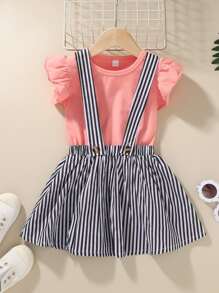 Ensemble t-shirt avec volants et jupe à bretelle à rayures