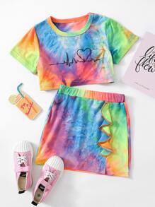 T-shirt tie dye avec motif cœur & Jupe à volants