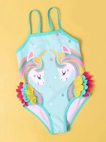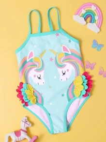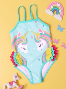 Maillot De Bain Une Pièce Pour Jeune Fille Avec Imprimé Licorne