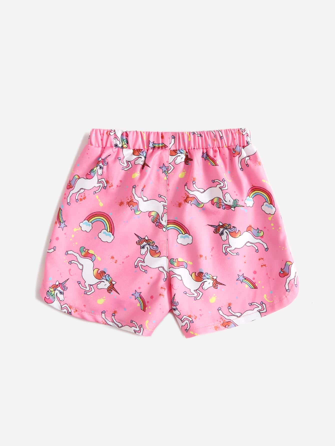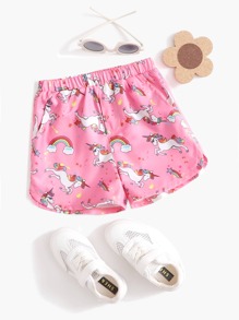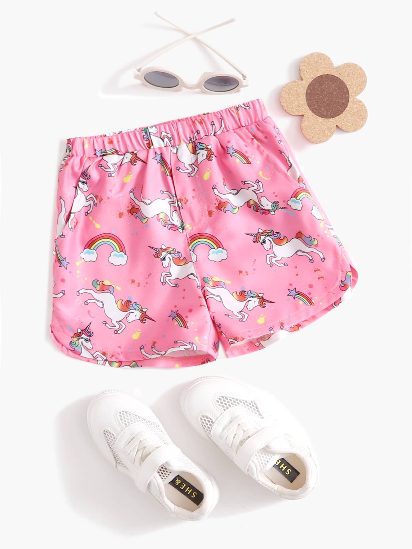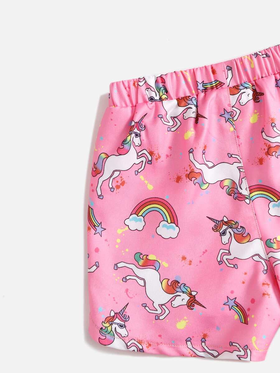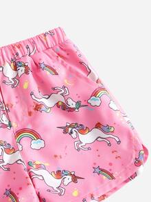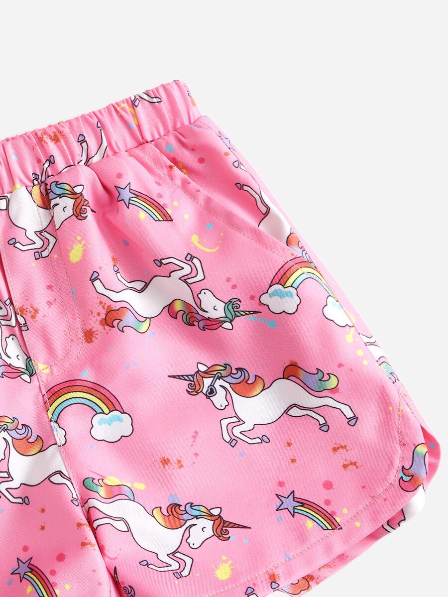 Fille Short à imprimé licorne et arc-en-ciel à poche
