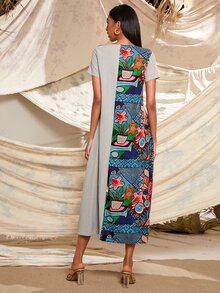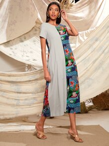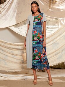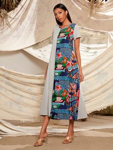 Robe longue avec blocs de couleurs à imprimé tribal