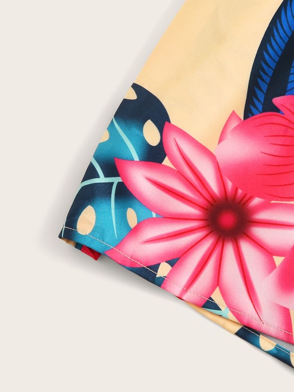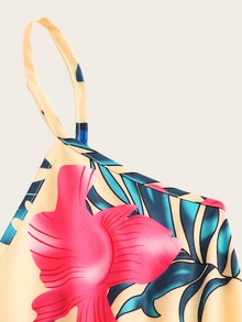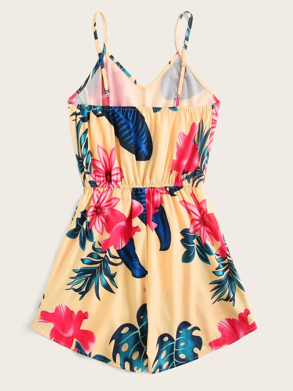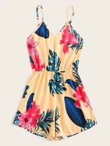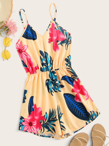 Combishort à fines brides à imprimé tropical
