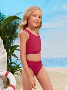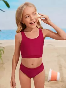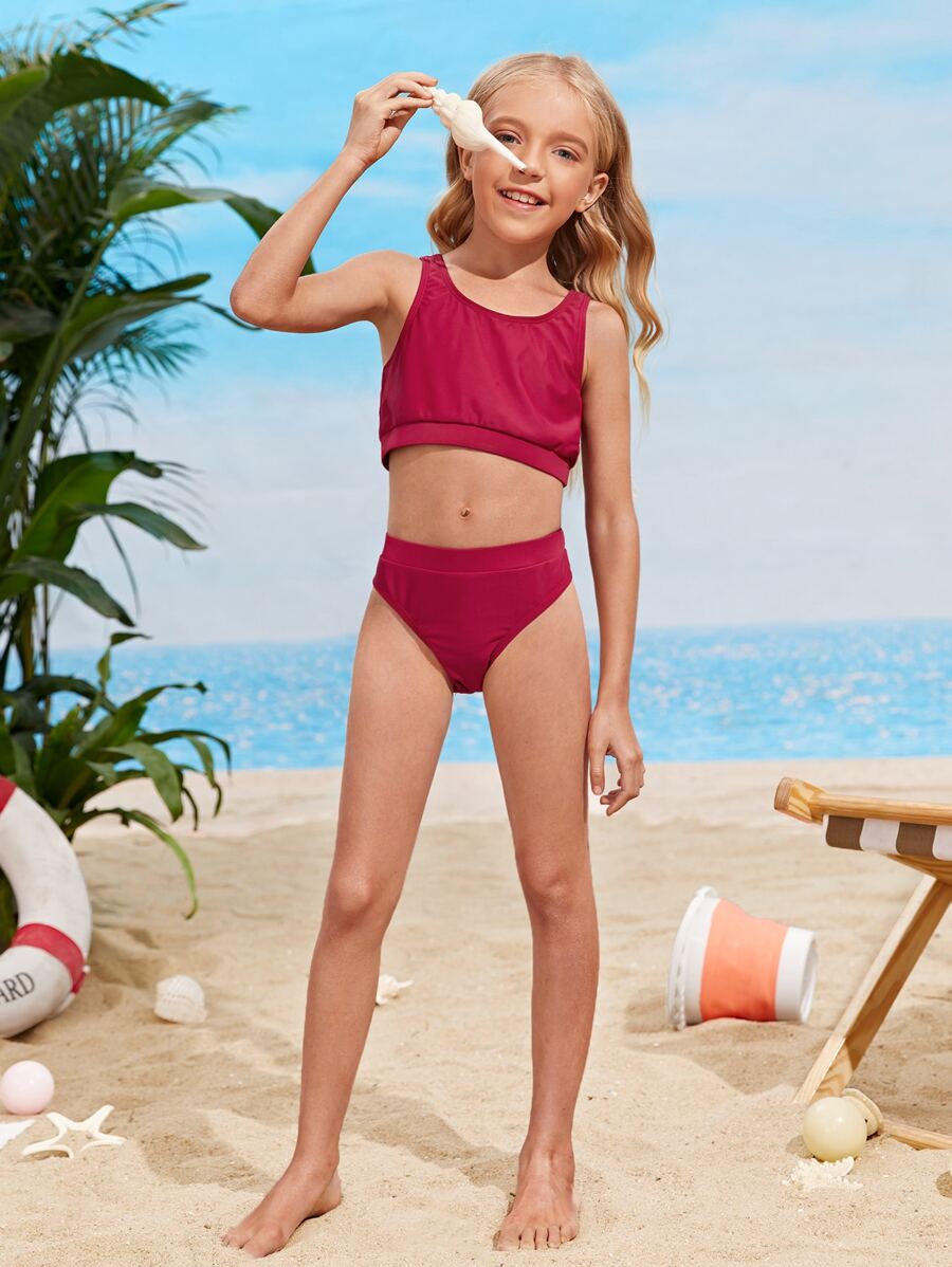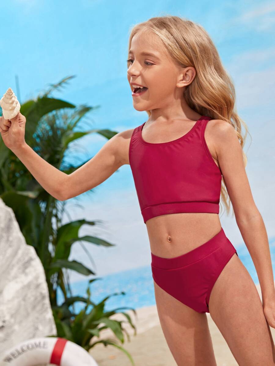 Ensemble de bikini uni pour pré-adolescente, été plage