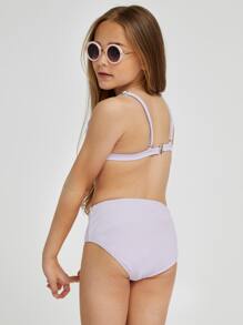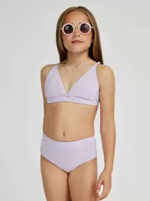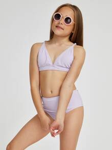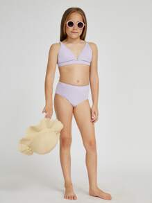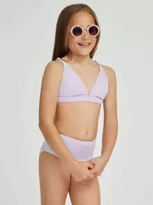 Ensemble de bikini taille haute col en V pour préadolescentes, été plage