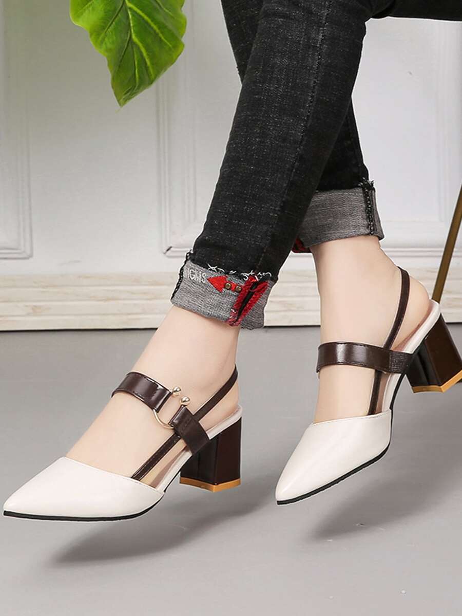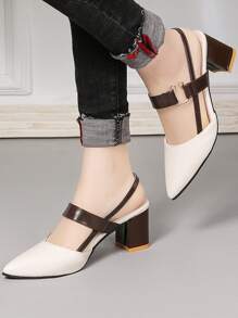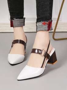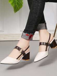 Escarpins bicolore épais à bride arrière
