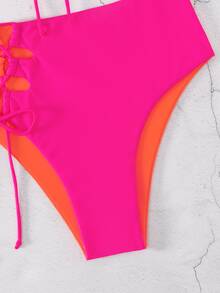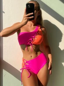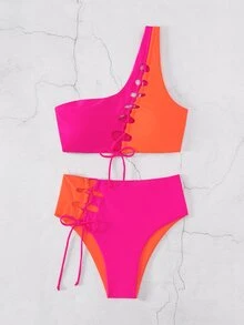 Ensemble de bikini été de plage avec lacets à une épaule en bicolore