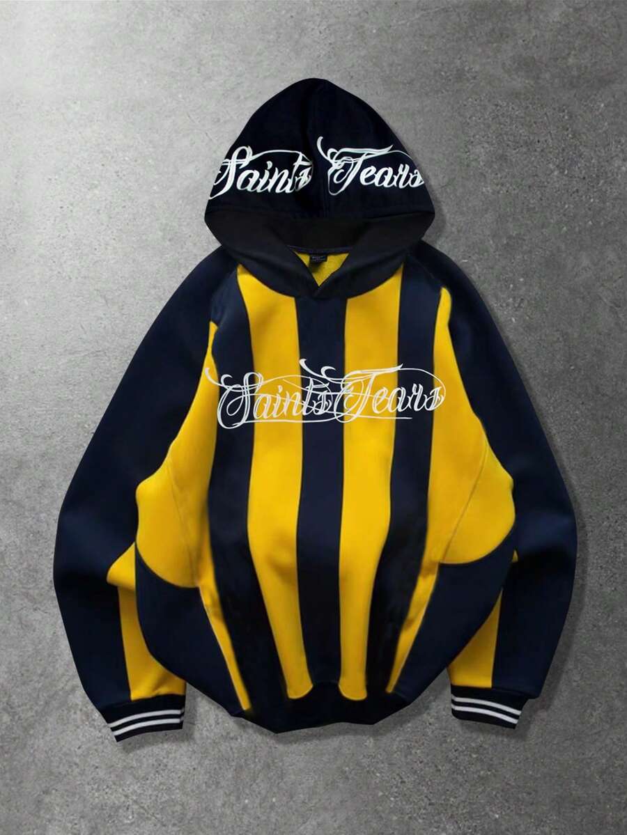 Sweat-shirt à capuche style baseball décontracté unisexe, Sweat-shirt pull rayé pour l'automne/l'hiver