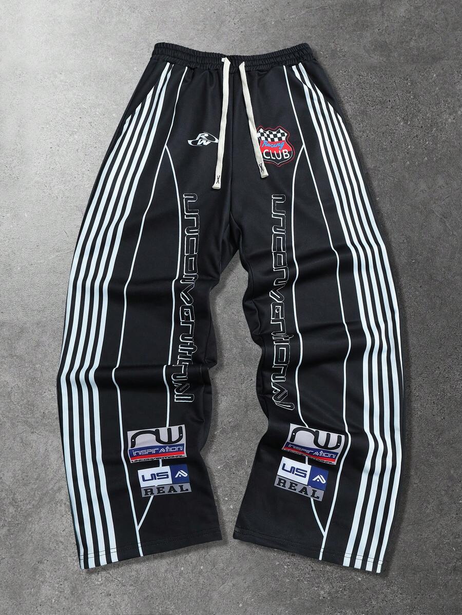 Pantalon de survêtement droit décontracté unisexe avec imprimé graphique en anglais américain