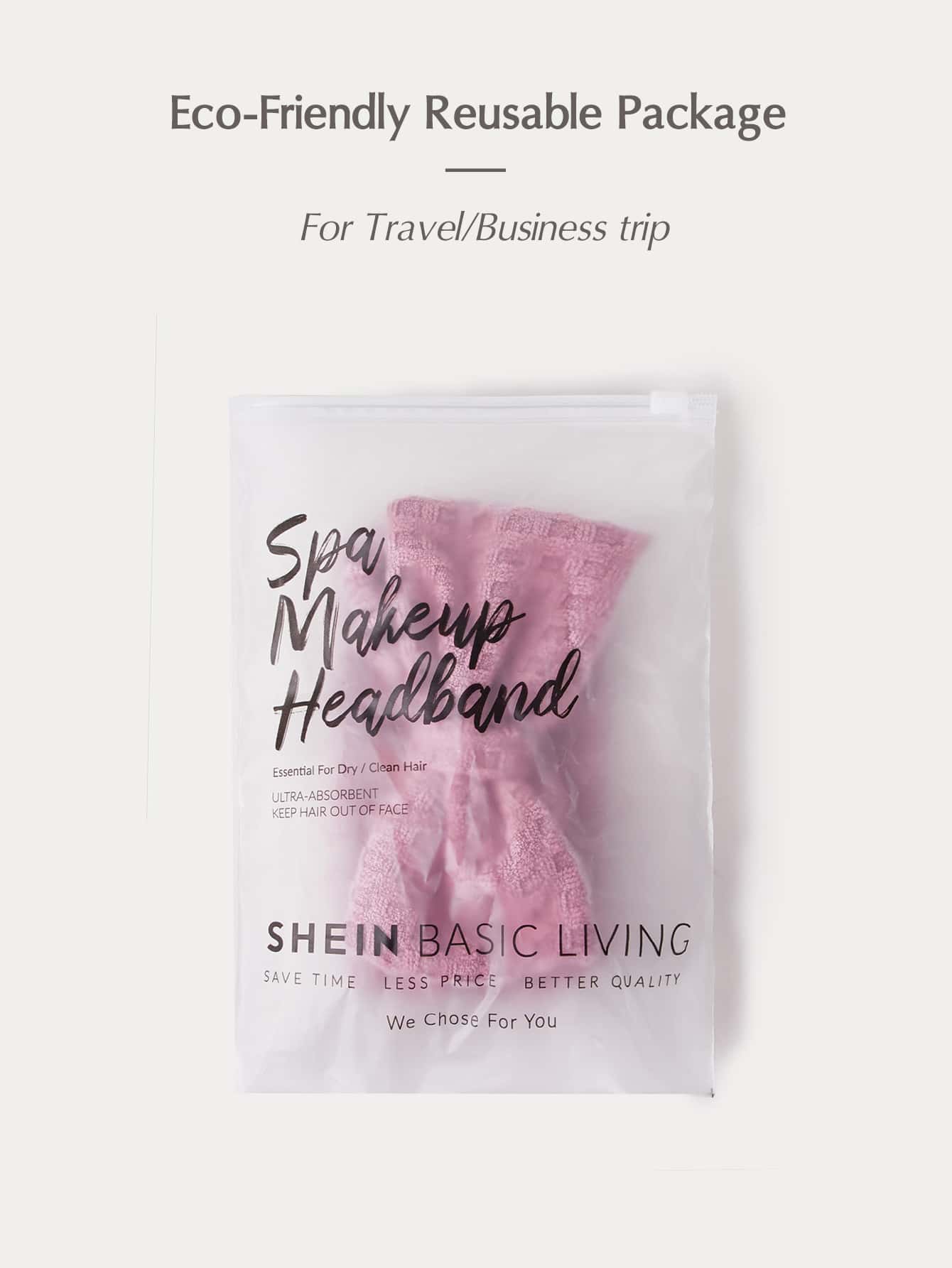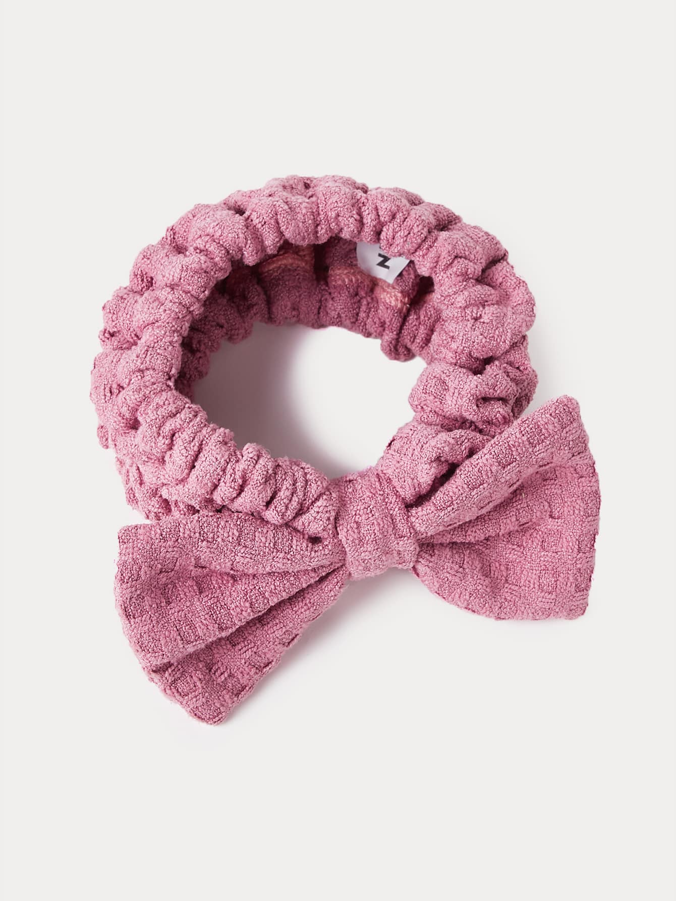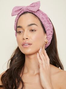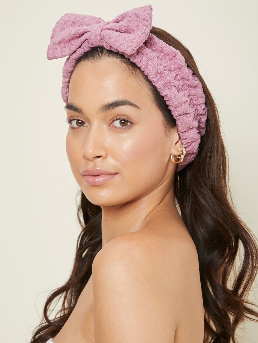 Bandeau de maquillage SPAen microfibre avec nœud gaufré - BASIC LIVING-Dessert Rose