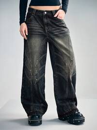 Grunge Punk Jeans amples femme avec décoration de rivets déconstructés, style streetwear chic Y2K