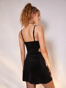 Robe à fines brides en velours en dentelle découpe