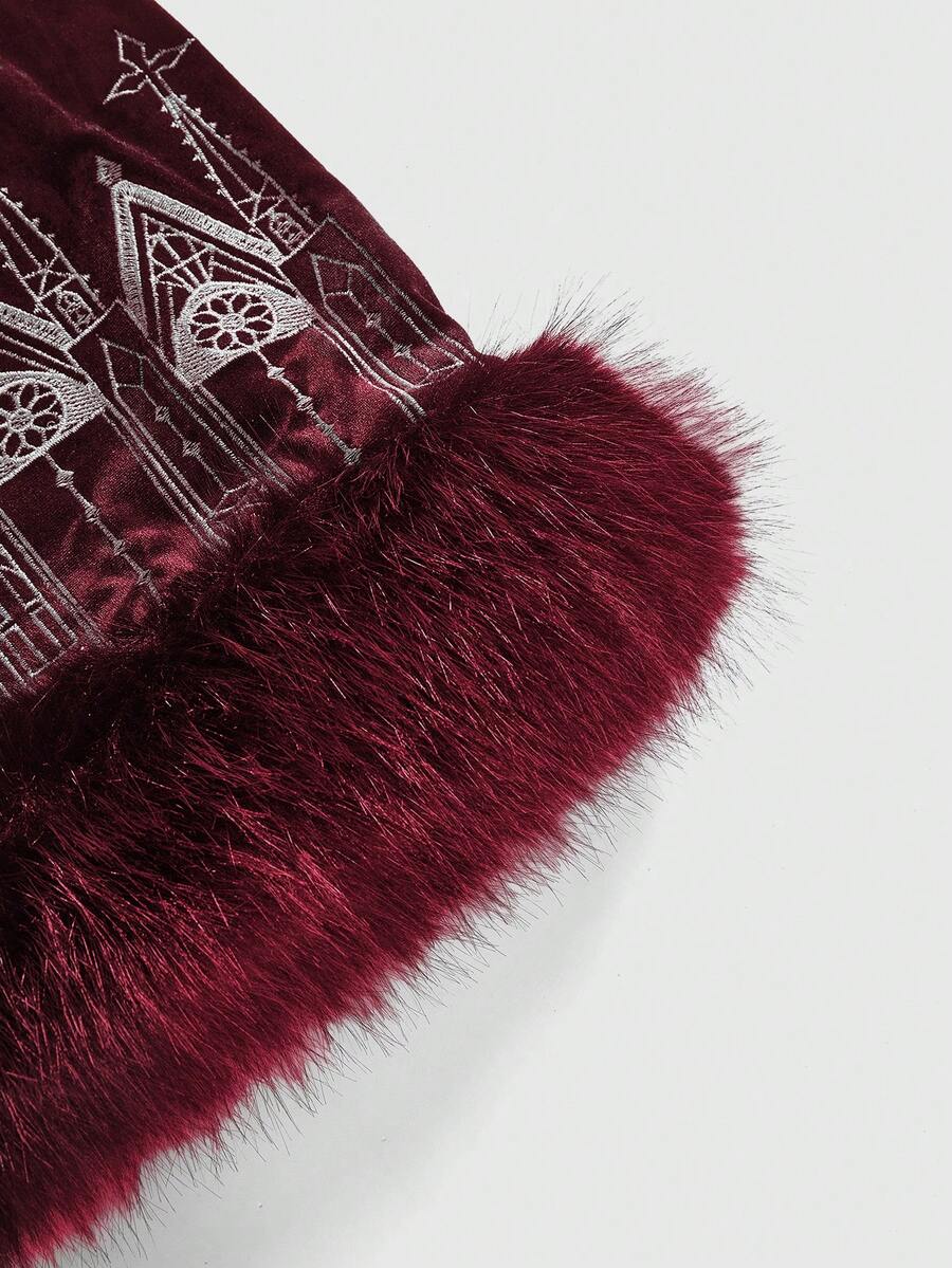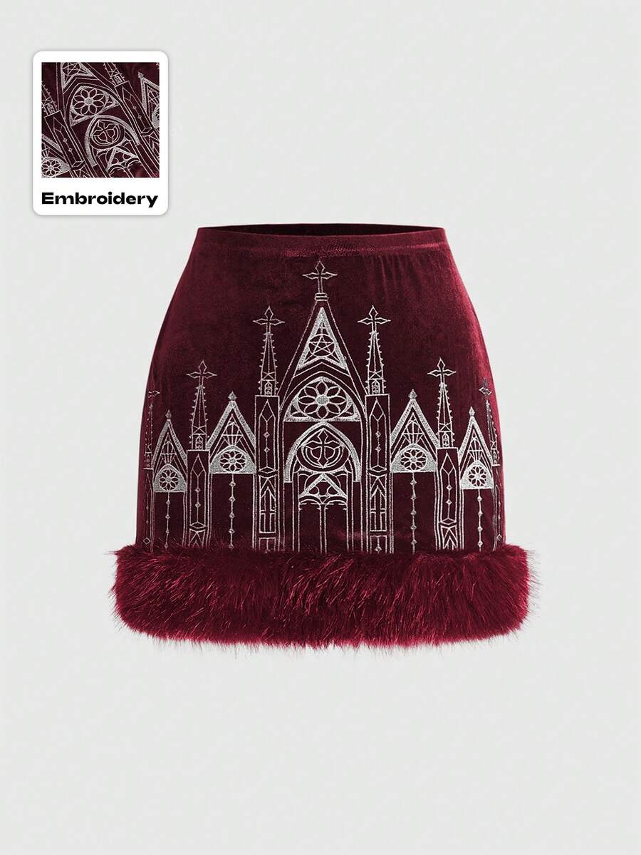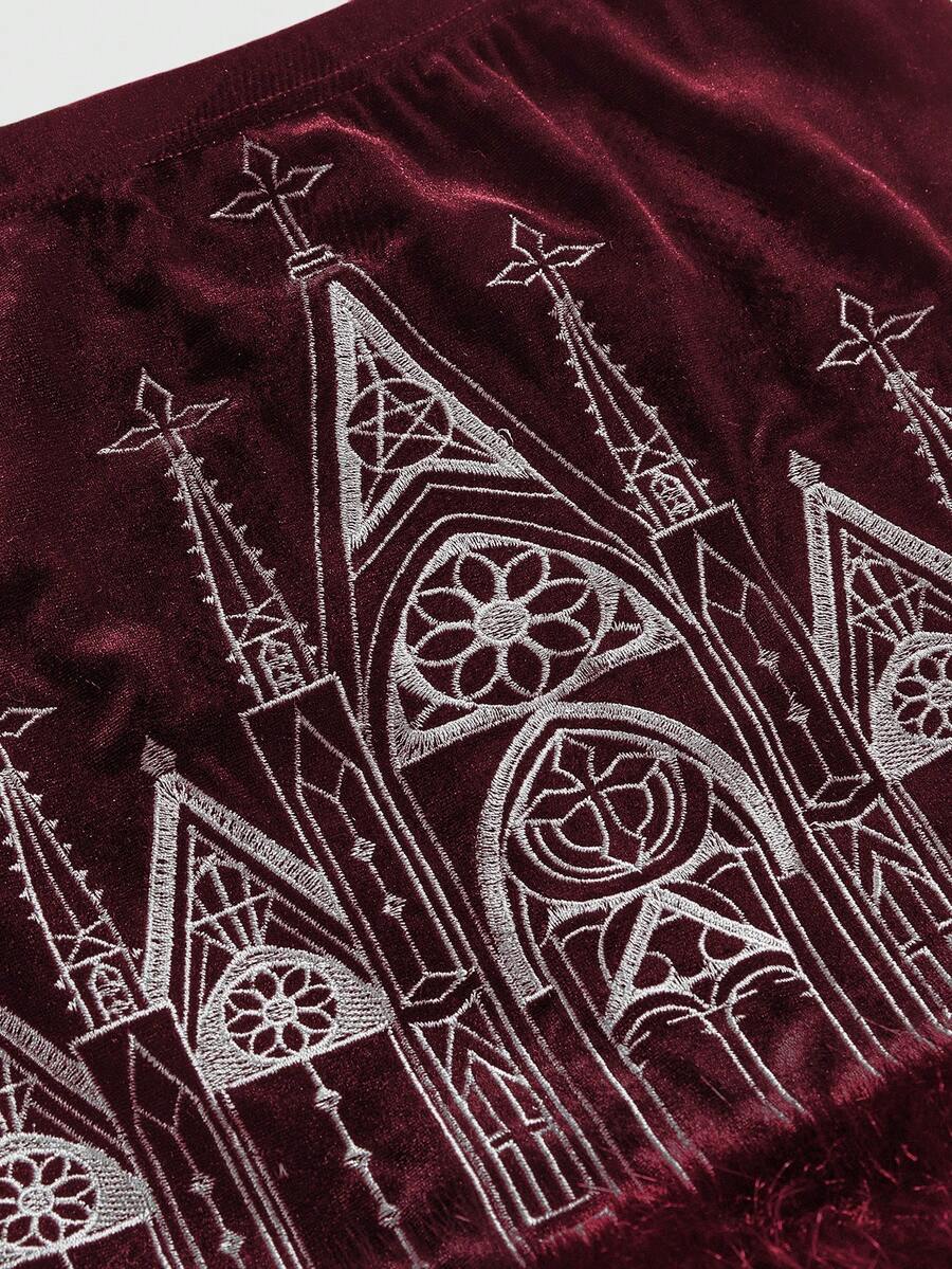 Jupe mini gothique vintage en velours moulante avec broderie de croix et effet volumineux